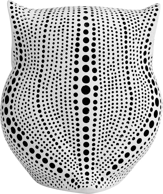 Owl Statue for Home Decor Accents Office Decoration, Handmade Polka Dots Buhos Modern Bird Figurine for Indoor Book Shelf Desktop Cabinet Fireplace Mantel Living Room Bedroom Ornament (White)